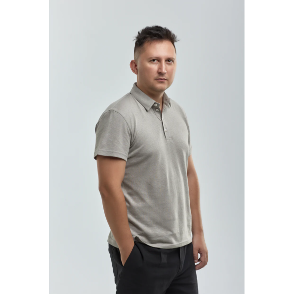 Gray men's polo 55% hemp 45% cotton