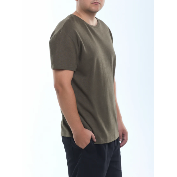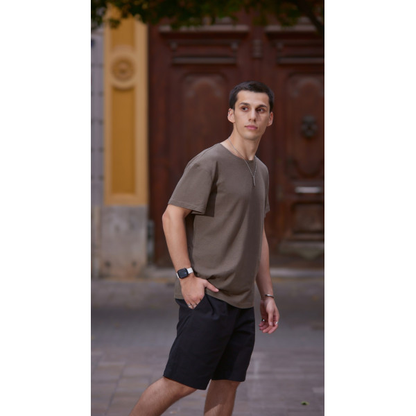 Khaki men's t-shirt made of 55% hemp 45% cotton