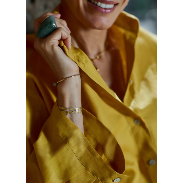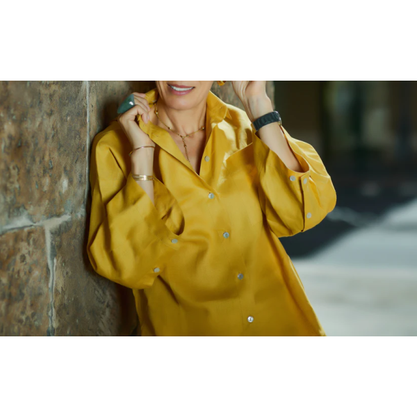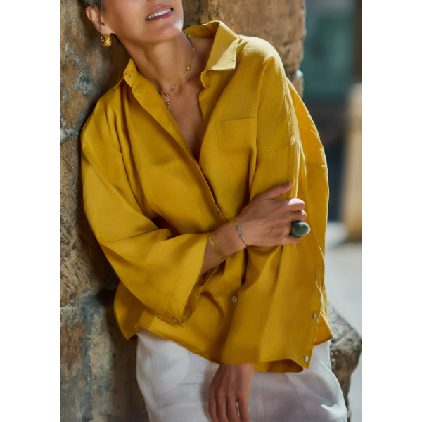 This mustard blouse made from 100% hemp with wide sleeves is the perfect choice for those who value natural fabrics and modern designs. Lightweight and breathable, it adds a pop of color and elegance to your look while maintaining sustainability and comfort. π