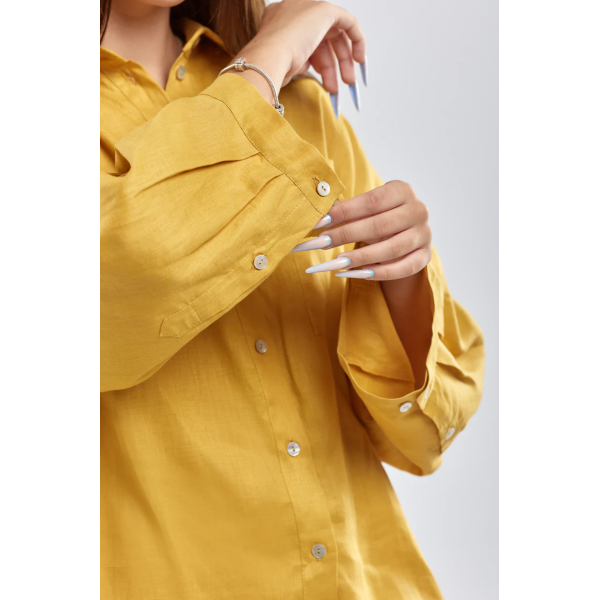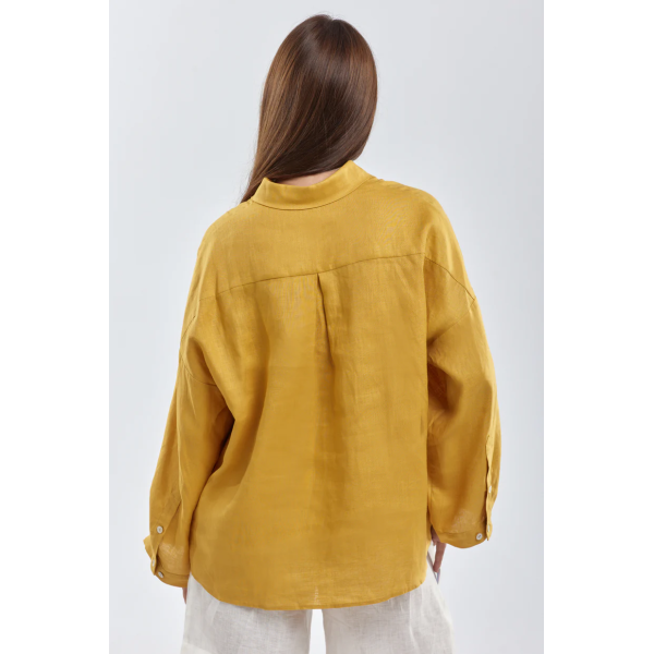 Mustard women's blouse with wide sleeves made of 100% hemp