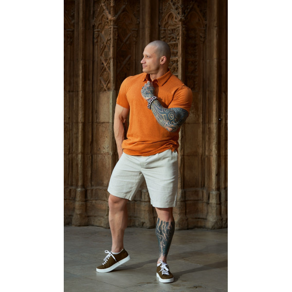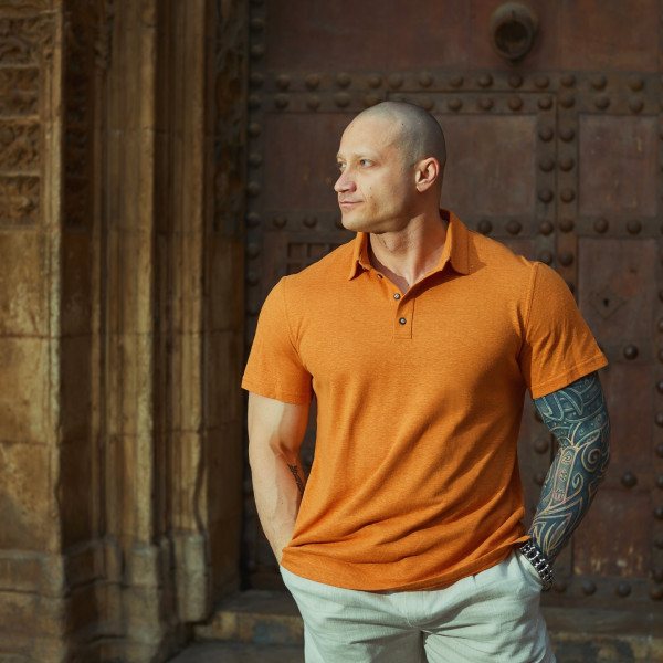 Orange men's polo 55% hemp 45% cotton