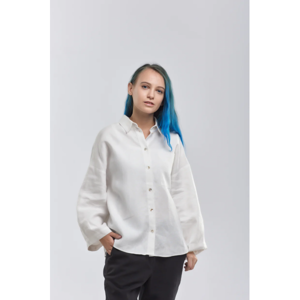 This light and stylish blouse made from 100% hemp is the perfect choice for those who appreciate natural fabrics and modern designs. The wide sleeves add an elegant volume, while the pure white color brings sophistication to your look. π«